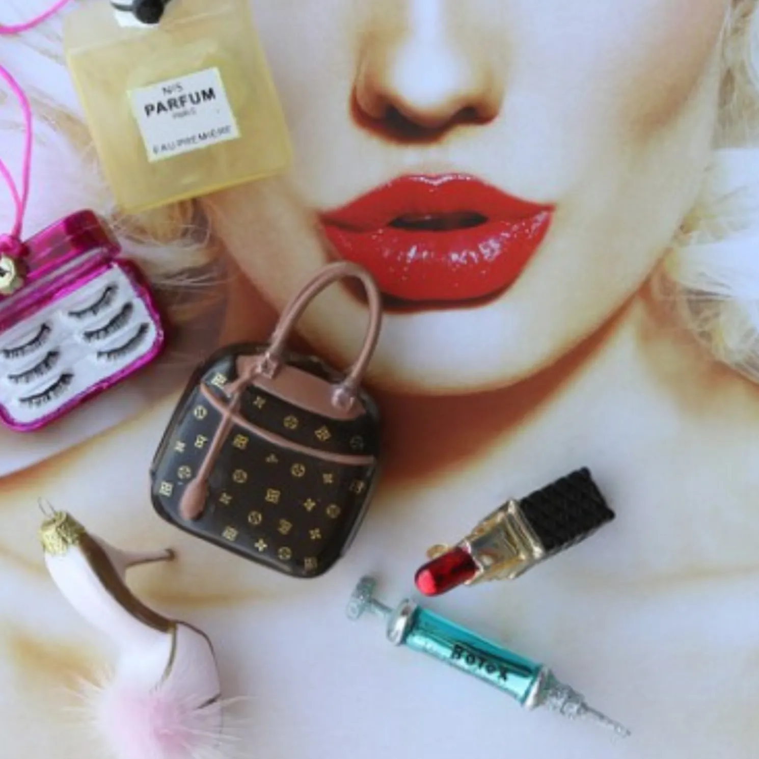 Got someone who’s a lil boujee on your Christmas list?? Look no further- we have the perfect gift! This ornament features a brown hand bag with lighter brown straps and accents. Allover the bag is a tiny golden pattern and gold glitter buckles!Made by Cody Foster.Made of glass.Dimensions:3″L x 1.75″W x 4″H.