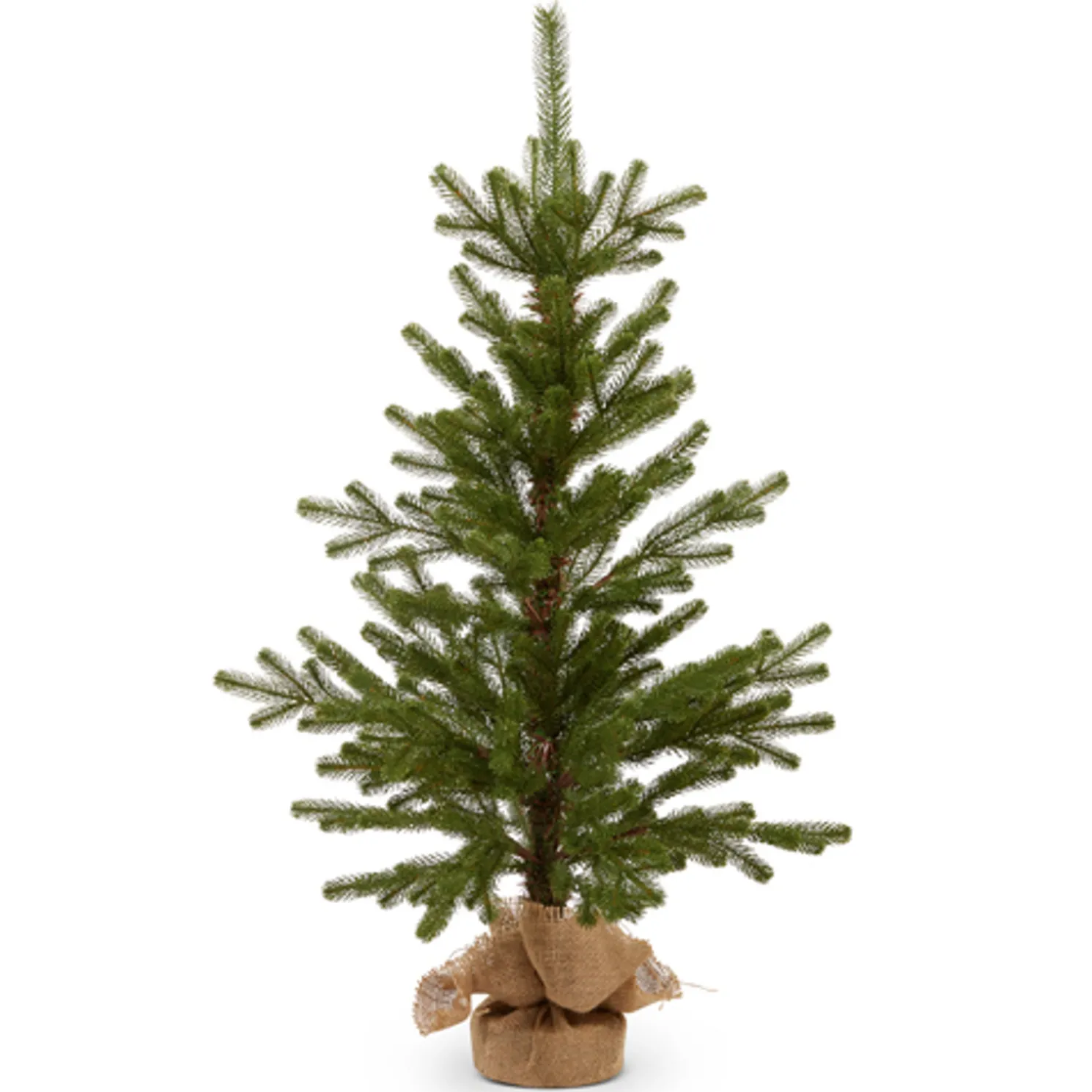 Add touches of the outdoors into your home this Christmas with these perfect little tabletop Christmas trees! Featuring lush green branches and the base of the tree wrapped in a burlap cloth!Each sold individually.Made by Raz Imports.Made of plastic, metal, and polyester.Dimensions: 36″ or 45″.