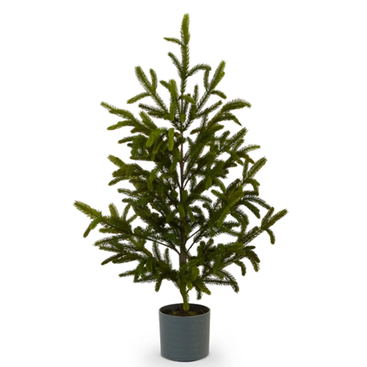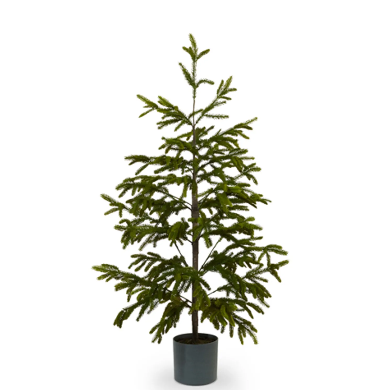 Lush green leaves on long branches make these trees look realistic and perfect to use in your home this holiday season! Wrap them with a strand of lights and stick one or two in the corner of the room!Each sold individually.Made by Raz Imports.Made of PVC and metal.Dimensions: 47″ or 60″.