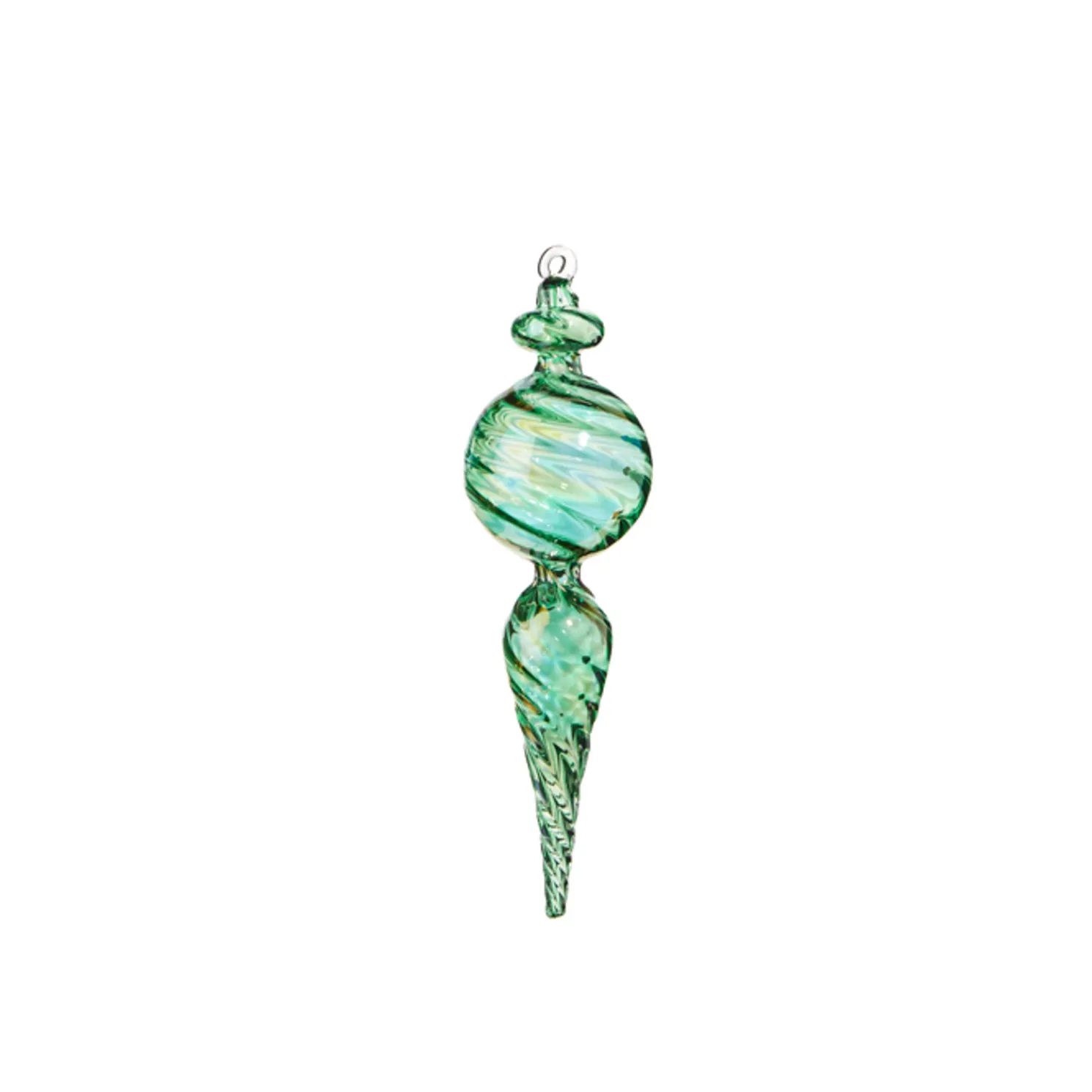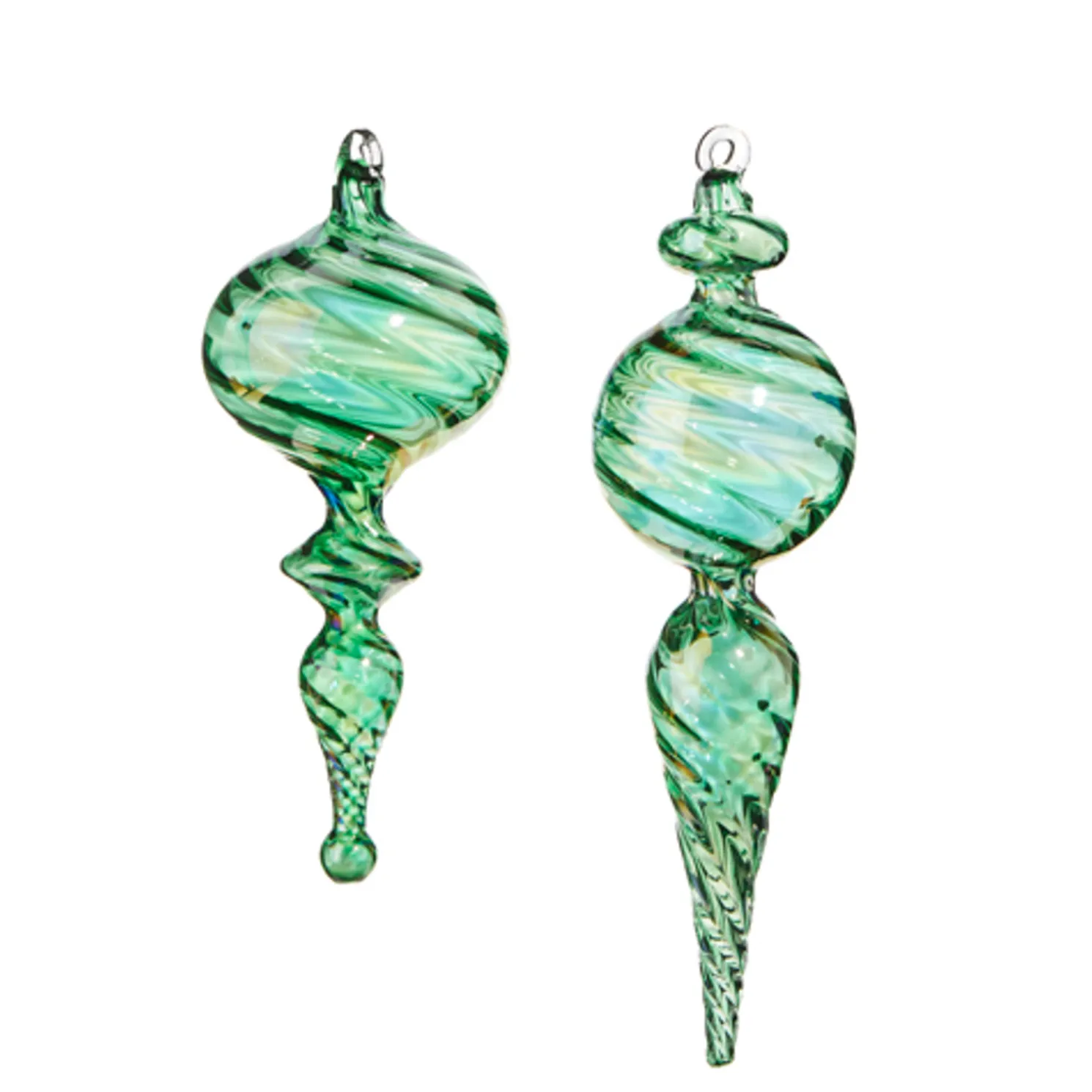 Add something green to your decor this holiday with these stunning ornaments! Each one is made from green blown glass with a swirled effect and a beautiful iridescent sheen!Each sold individually OR as a set.Made by Raz Imports.Made of glass.Dimensions: 9″.