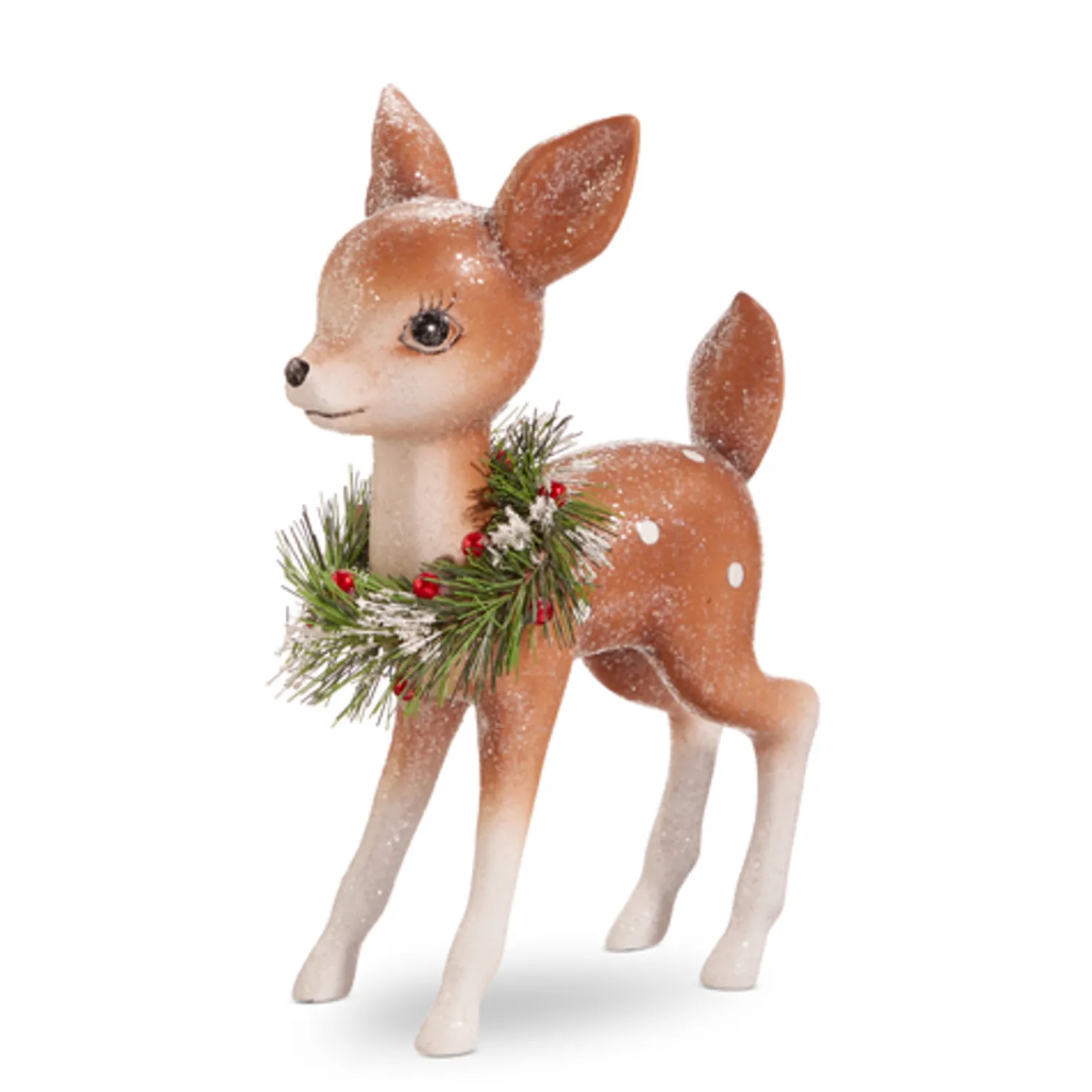 Bring in the feel of nostalgia from your favorite vintage Christmas decorations you remember from being a kid! These little cute deer are light brown with small white spots dusted in glitter with a fluffy berry wreath draped around their necks! Place these figures on a stack of books on your coffee table or up on the mantle!Each sold individually.Made by Raz Imports.Made of plastic and resin.Dimensions:6.5″ L X 3.75″ W X 9″ H or5.75″ L X 3.5″ W X 6.75″ H.