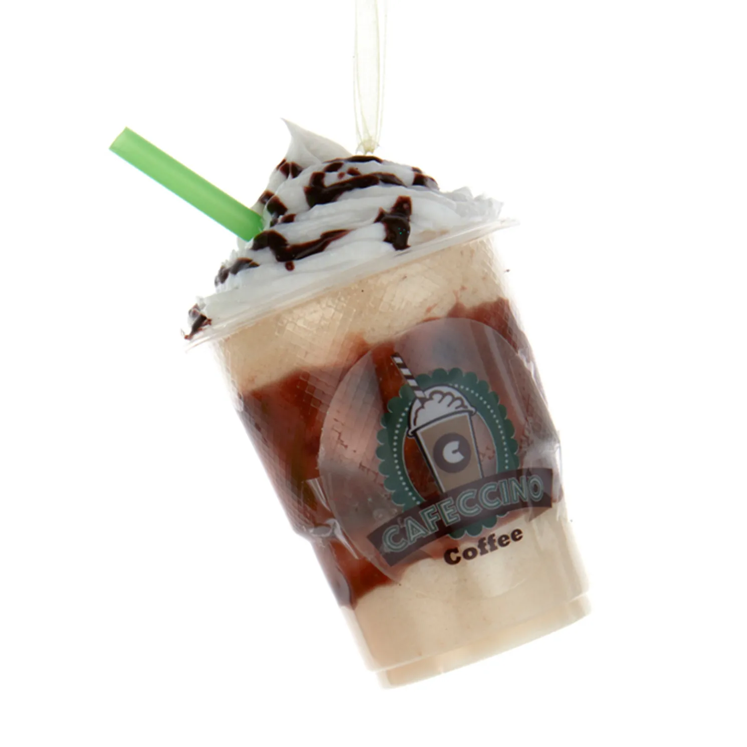Gotta get that caffeine fix! If you have a coffee lover on your list or if you’re a coffee lover yourself, you need these ornaments! Each one features an icy blend of coffee and milk with caramel or chocolate inside the cup topped with whipped cream and a green straw!Each sold individually.Made by Kurt Adler.Made of plastic and foam.Dimensions: 4.5″.