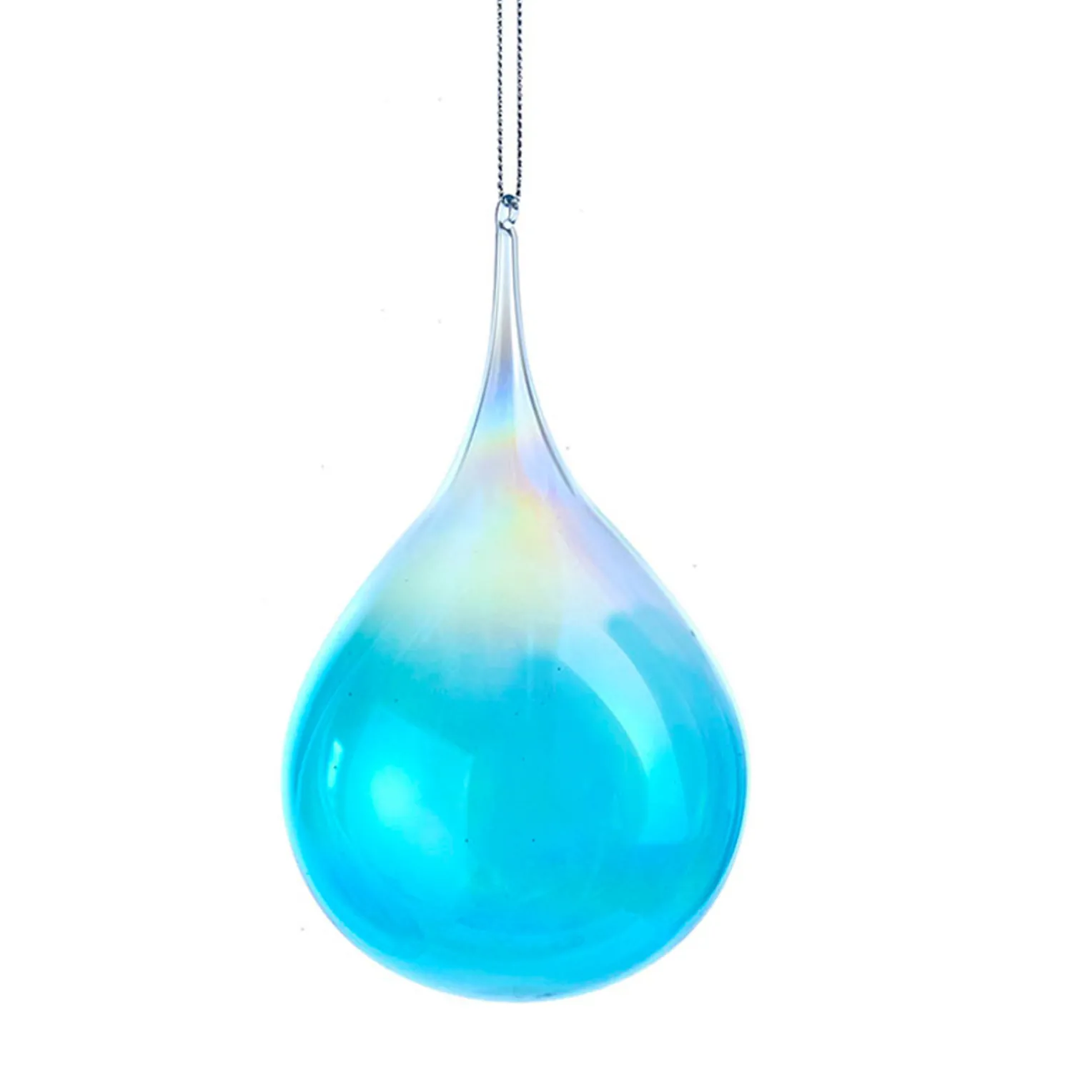 Brighten up your tree with these stunning blue drop ornaments! They resemble a fresh fallen rain drop or the bright blue of the ocean!Each sold individually.Made by Kurt Adler.Made of glass.Dimensions: 5″.