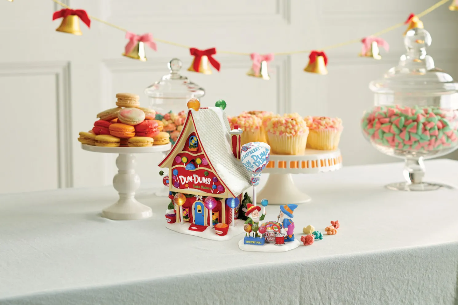When you think of lollipops, we all think of these little delicious Dum-Dums! This gorgeous red house features a white shingled roof dripping in glittering white snow and colorful lighted candies and a Dum-Dums logo on the front! Each window is a bright color and the front door is trimmed in a garland and flanked by two giant lollipops! Pairs with Dum Dums Taste Buds Figure 6014522 and A Tasteful Fence 6014518 all sold separately.Introduced October 2023.Made by Department 56.Made of porcelain.Dimensions:7.48in H x 4.45in W x 6.81in L.Item #: 6014521