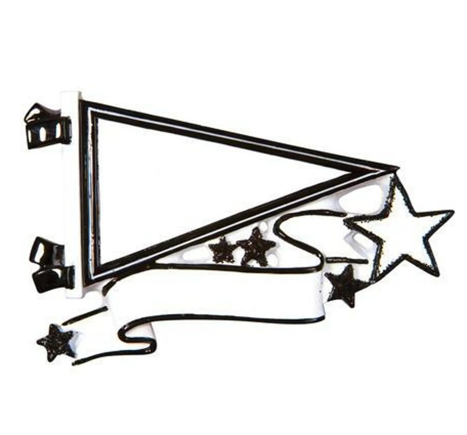 Whether you’re a cheerleader on the sidelines, or in the bleachers, or an athlete on the field, you can represent your team spirit with thisSports Pennant Christmas Ornament! Have your name, your team or school name, and the year written on this lovely little ornament!Made of Resin.Dimensions:4″ x 2.5″ x .25″.Item #: OR1558-BK