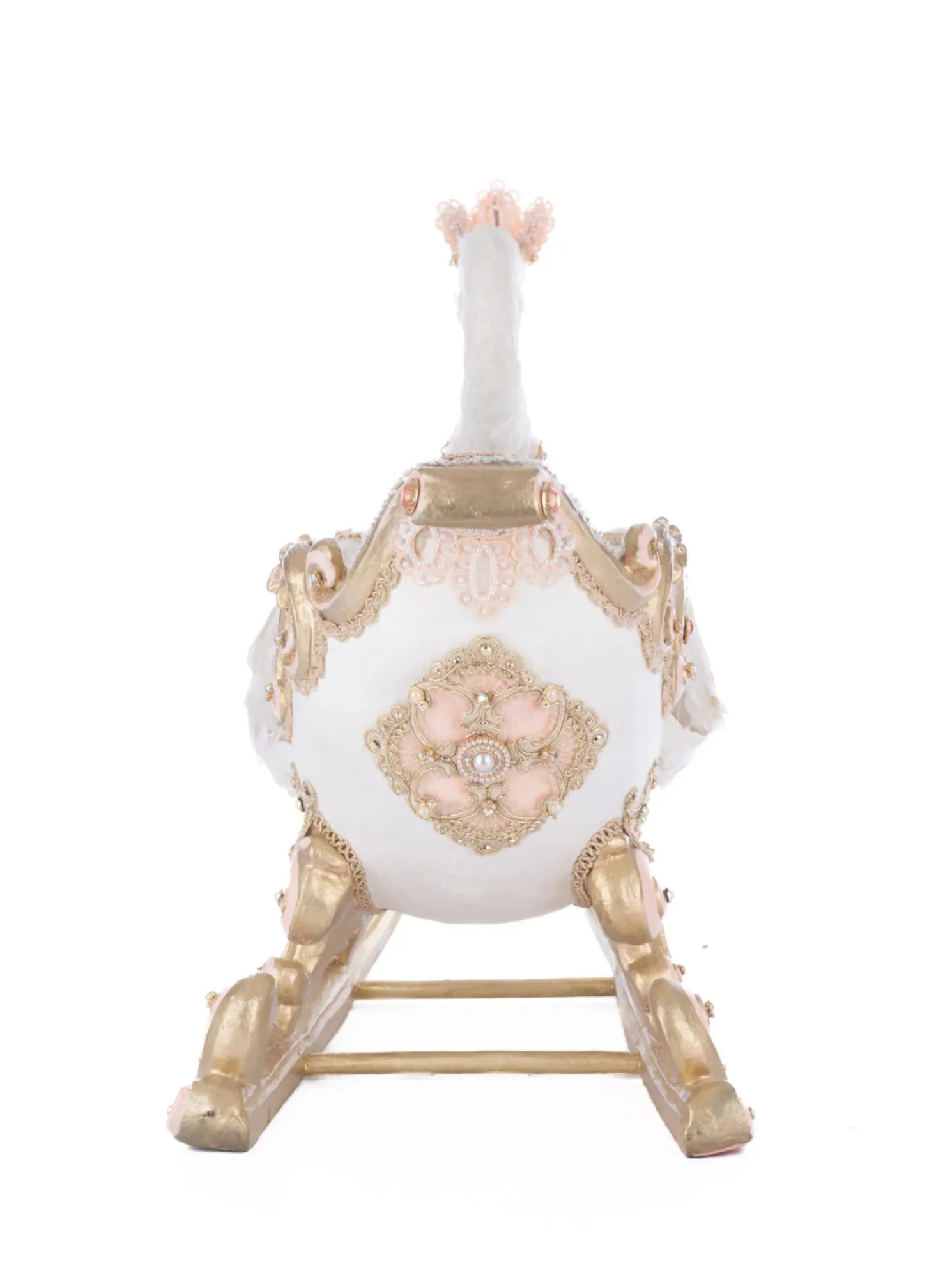 Bring a touch of fairytale elegance to your holiday décor with this breathtaking swan sleigh from Katherine’s Collection. Cloaked in soft snow-white feathers, the graceful swan wears a delicate crown in light pink and gold. Her body transitions seamlessly into an ornate carriage-style sleigh adorned with intricate golden scrollwork, pastel pink and blue accents, and shimmering glitter details. The front of the sleigh features a lavish gold brooch framed by ruffled ribbon, adding a regal finishing touch. A stunning centerpiece for your mantel, tabletop, or entryway display this Christmas season.Made by Katherine’s Collection.Dimensions:21 × 11 × 18 in.Item #: 28-528846