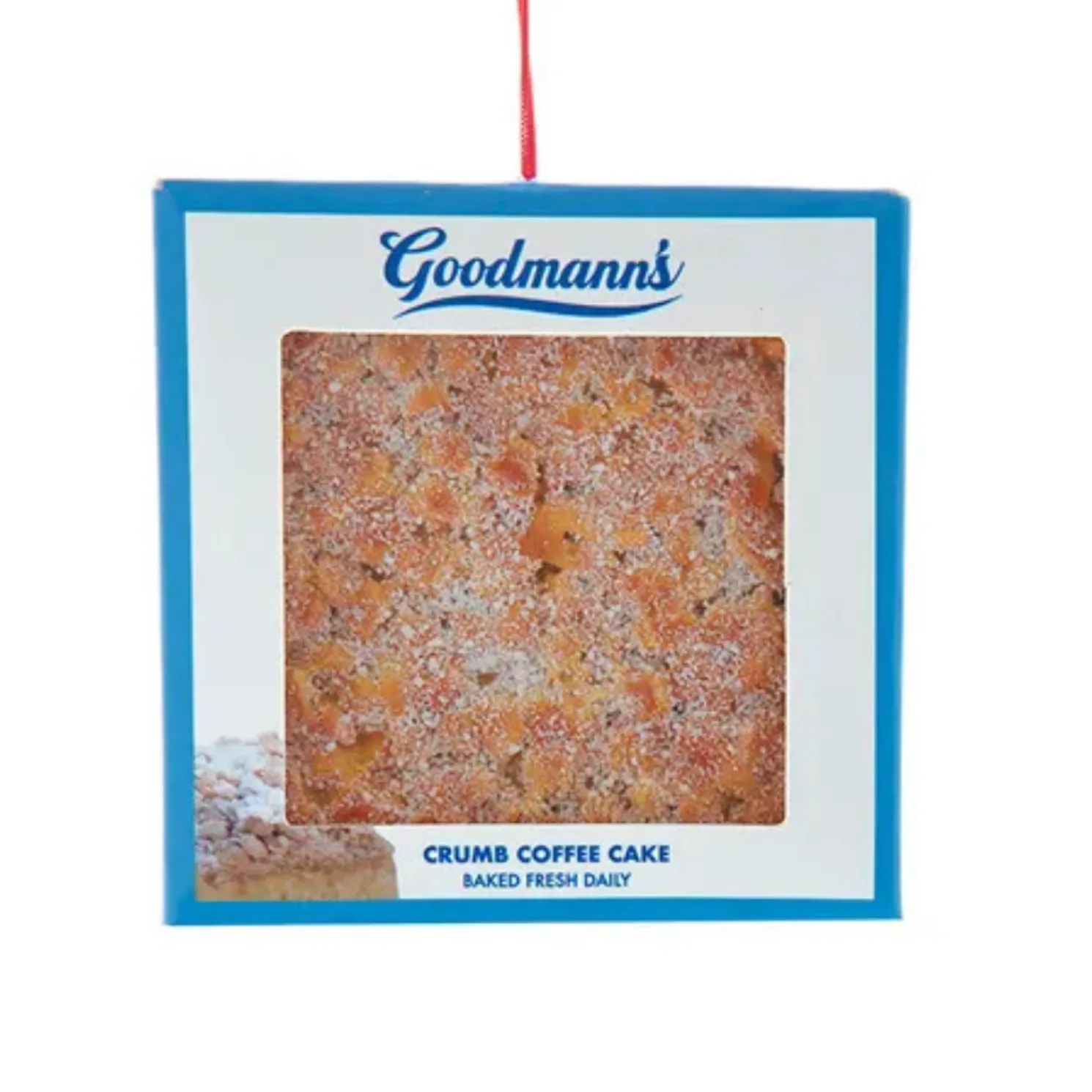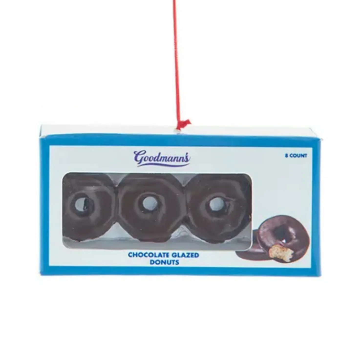 Bring a touch of bakery-inspired charm to your holiday décor with these delicious-looking dessert ornaments from Kurt Adler! Choose between a crumbly coffee cake dusted in powdered sugar or a box of rich chocolate-frosted donuts. Each treat comes packaged in a classic blue and white paper-style box with a clear cellophane window for an extra-realistic touch. A sweet addition to any foodie’s Christmas tree!Each sold individually.Made by Kurt Adler.Made of plastic and resin.Dimensions: 3.75″.