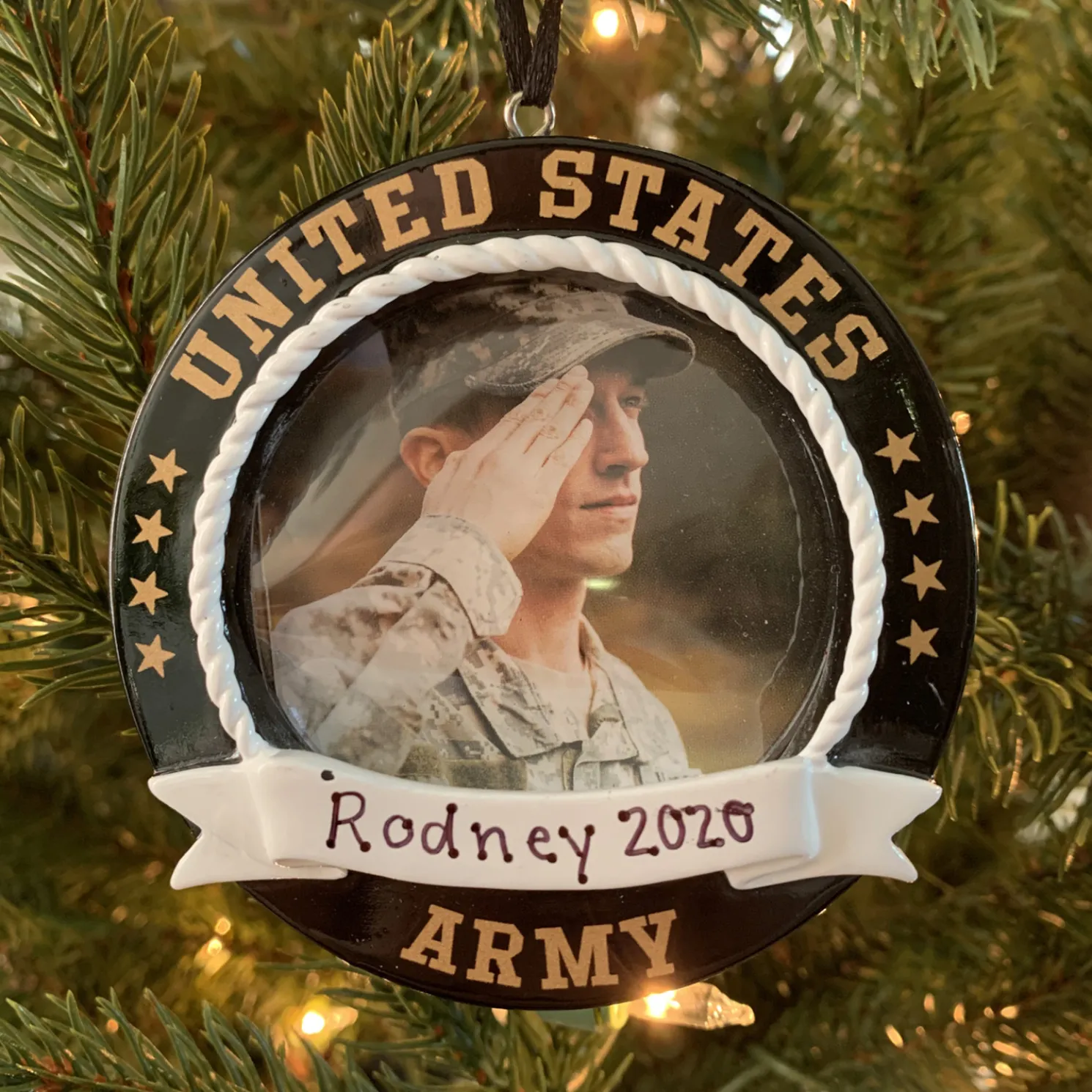 The perfect gift for your soldier! Get this framed ornament personalized, with his or her name.