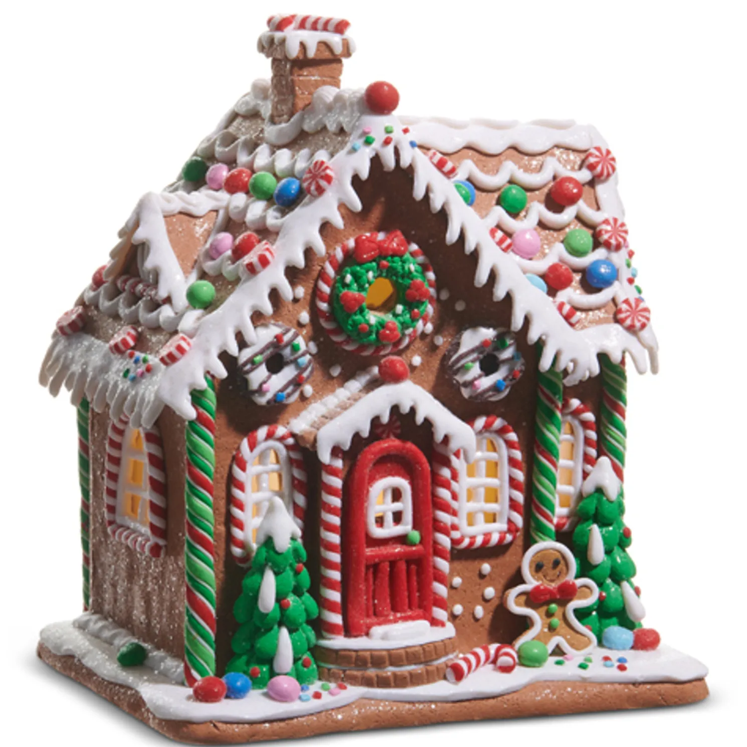 Add a whimsical touch to your Christmas decor with these charming gingerbread houses! Each one features brown cookie-style walls adorned with intricate white icing, red and white peppermint sticks, colorful candies, and classic Christmas characters. With their warm glow, they’re perfect for displaying on a kitchen counter, dining table, or nestled into a festive village scene on your mantle!Requires 3 AA Batteries, not included.6 Hour Timer Repeats Every 18 Hours.Each sold individually.Made by Raz Imports.Made of clay dough.Dimensions:9″ L X 6.5″ W X 10″ H or10.25″ L X 7.5″ W X 12″ H.