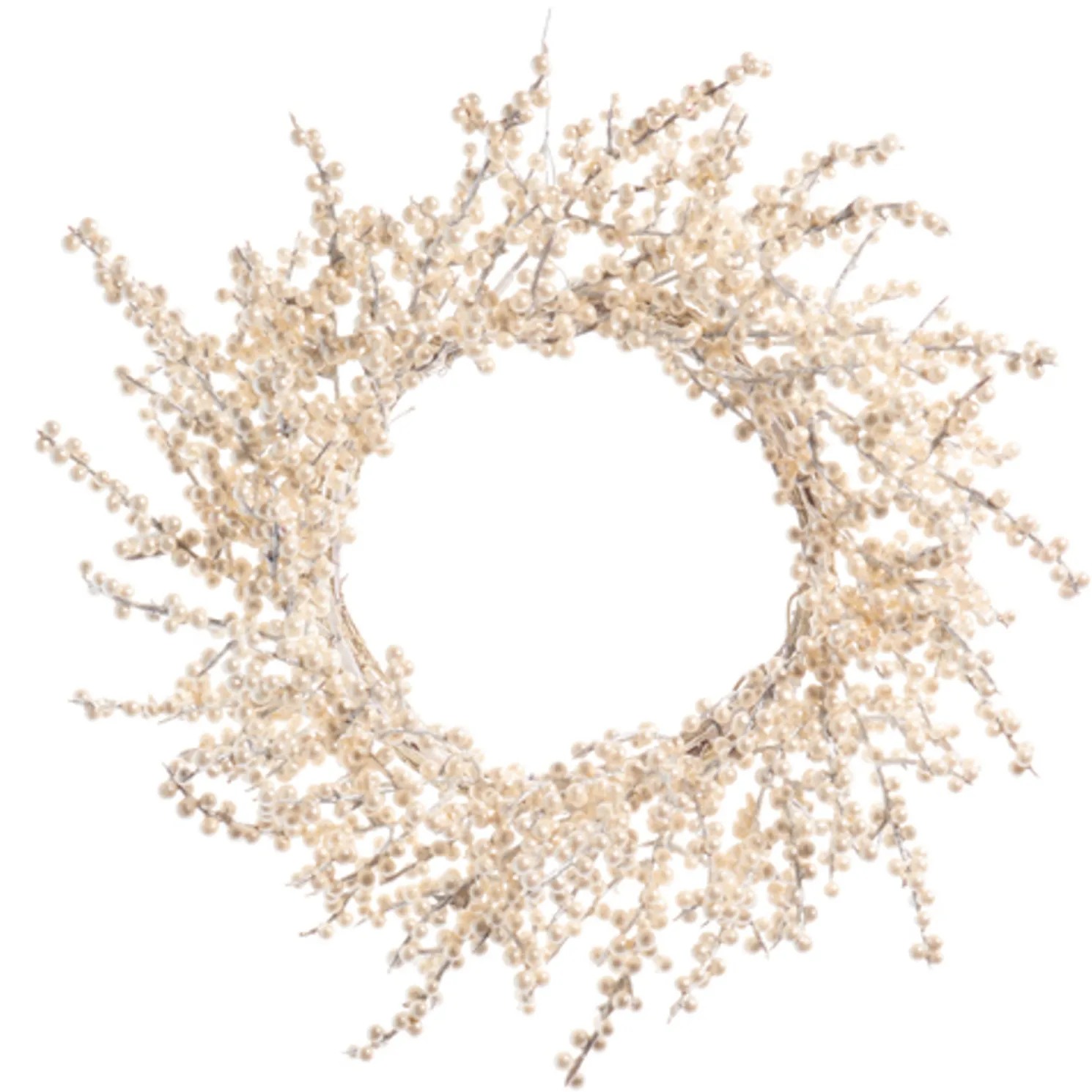 Gorgeous white branches are encrusted with shimmering iridescent pearls to give an elegant and coastal vibe to your home! Lovely to hang on the wall above your mantle or on your front door!Made by Raz Imports.Made of plastic and twig.Dimensions: 20″.