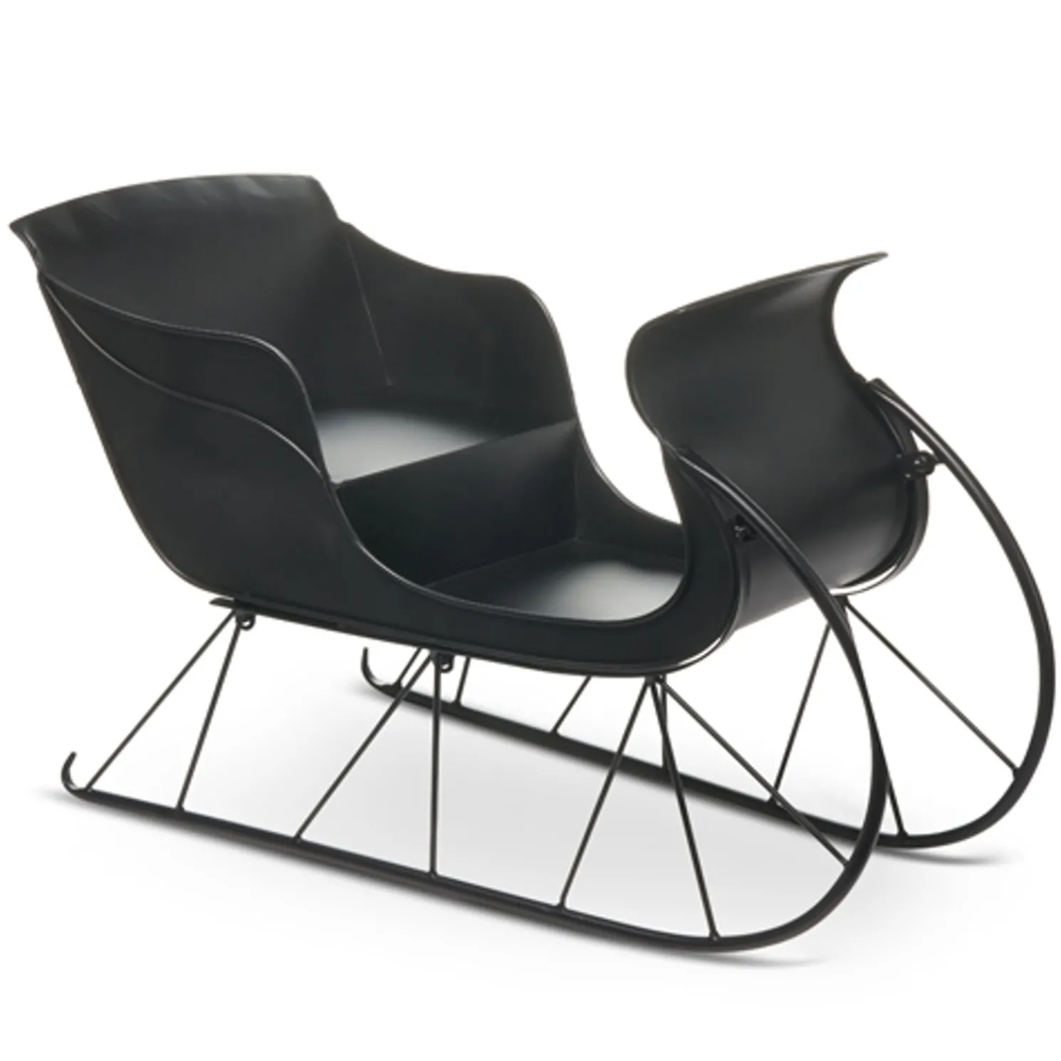 Take your favorite posable elves and give them the perfect spot to sit this holiday season! This sleek black metal sleigh complements any decor and looks great filled with greenery, flameless candles, or your favorite Christmas figures.Not Intended For Children.For Decorative Use Only.Assembly Required.Indoor and Covered Outdoor Use.Made of iron.Dimensions:25.25″ L X 12″ W X 15″ H.