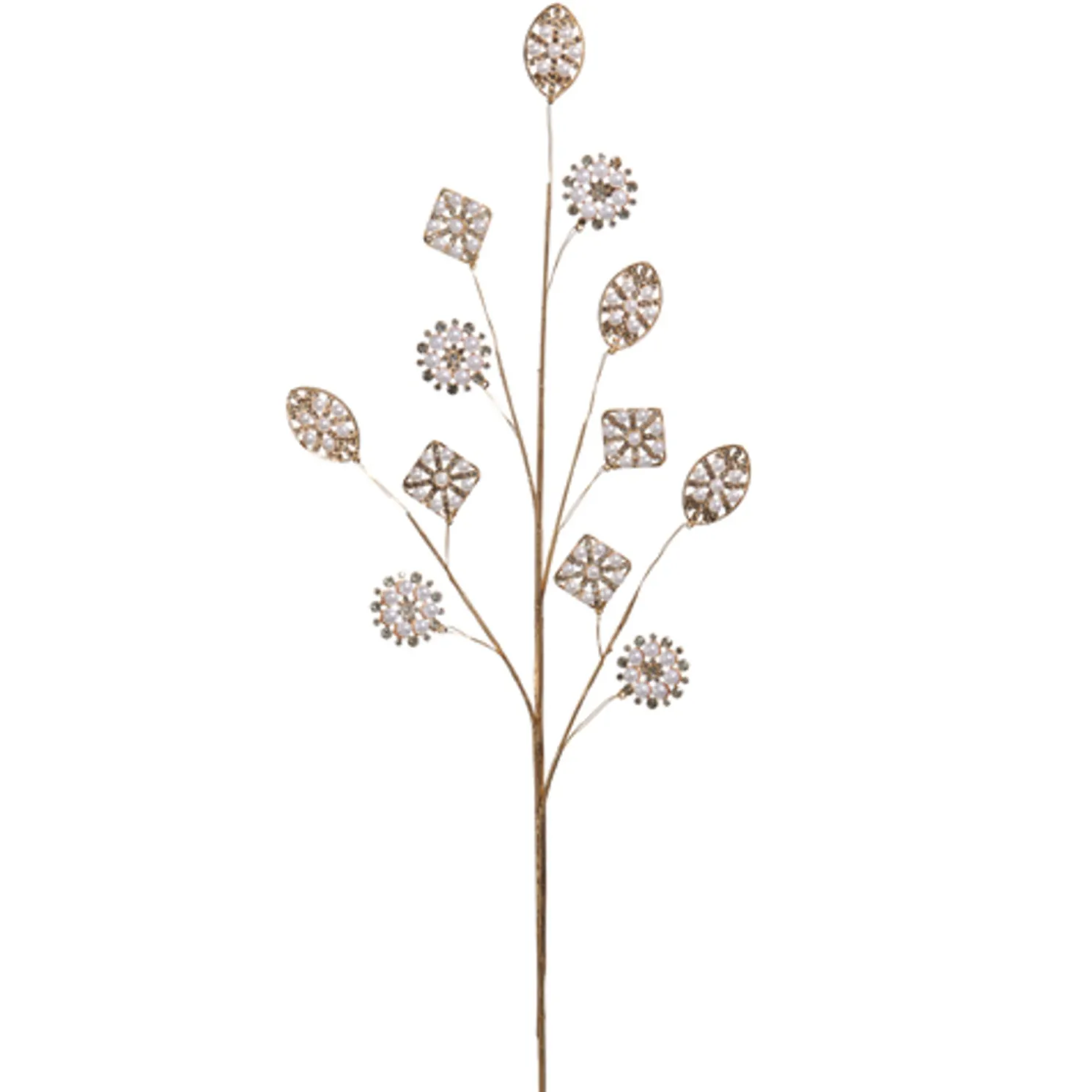 Gorgeous vintage inspired brooches are made up of shimmering pearls set in gold! This jeweled Christmas spray is perfect for an elegant vintage inspired tree, wreath, or garland!Made by Raz Imports.Made of iron and plastic.Dimensions: 29″.