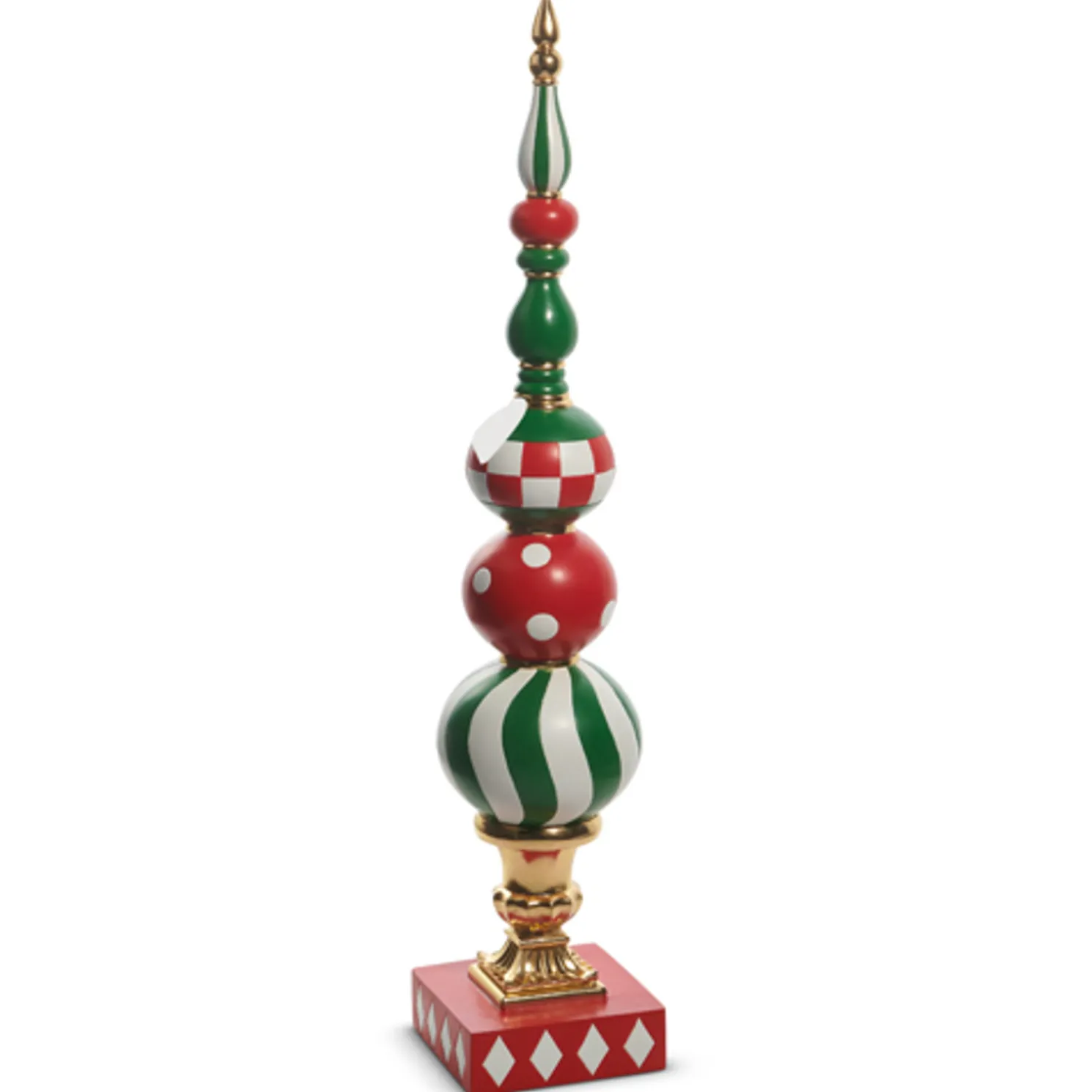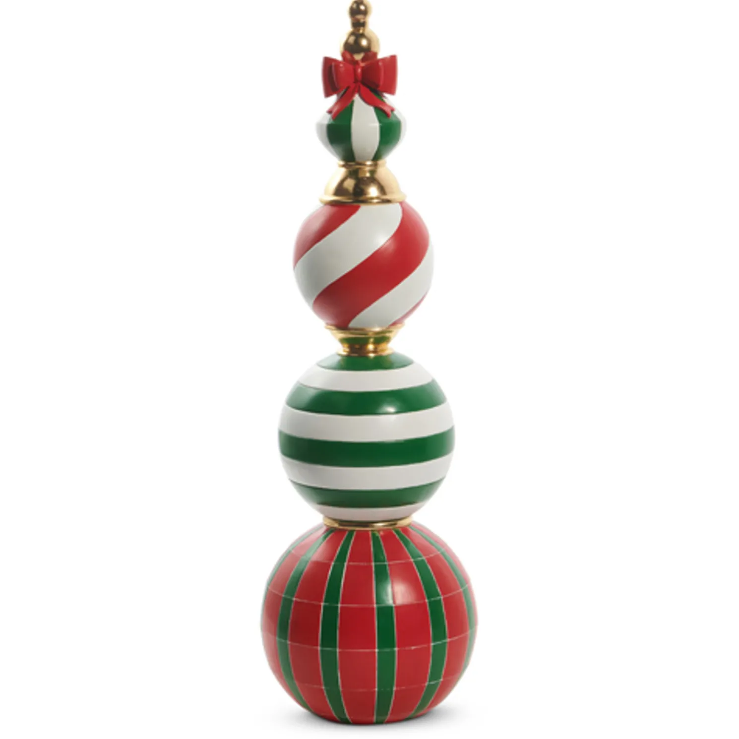 Decorate your foyer with these stunning finials! Each one is made up of stacked rounded shapes in different patterns of swirls, dots, and stripes and accents of gold with a pointed top! Choose 36″ or 52″! They will look fabulous placed in a doorway or next to your Christmas tree! 3 different sizes.Each sold individually.Made by Raz Imports.Made of resin.Dimensions:10″ L X 10″ W X 52″ H or11″ D X 36″ Hor 7″ L X 7″ W X 36″ H.