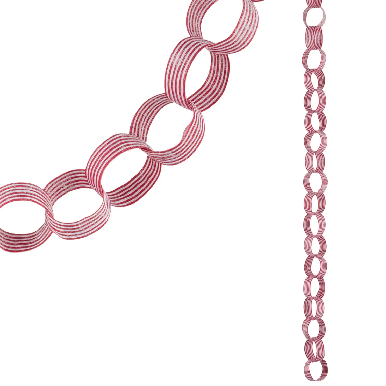 This garland is made of red and white stripedrings dusted with a light glitter! Hang along your mantle or in your Christmas tree!Made by Raz Imports.Made of polyester and plastic.Dimensions: 4′.Item #: G4106712