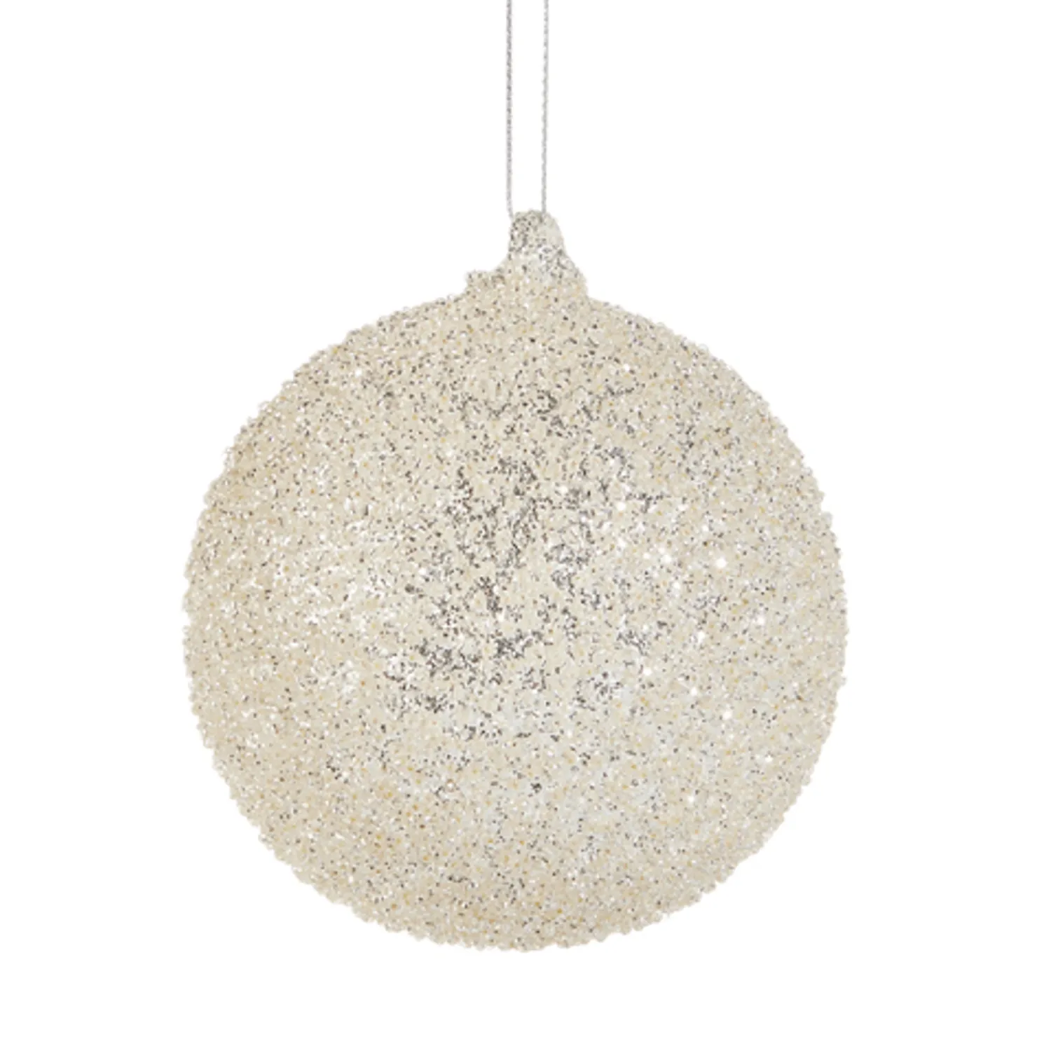 We love a good sparkly moment! Adorn your tree with this adorable silver glittered glass ball ornament!Made by Raz Imports.Made of glass.Dimensions: 4″.