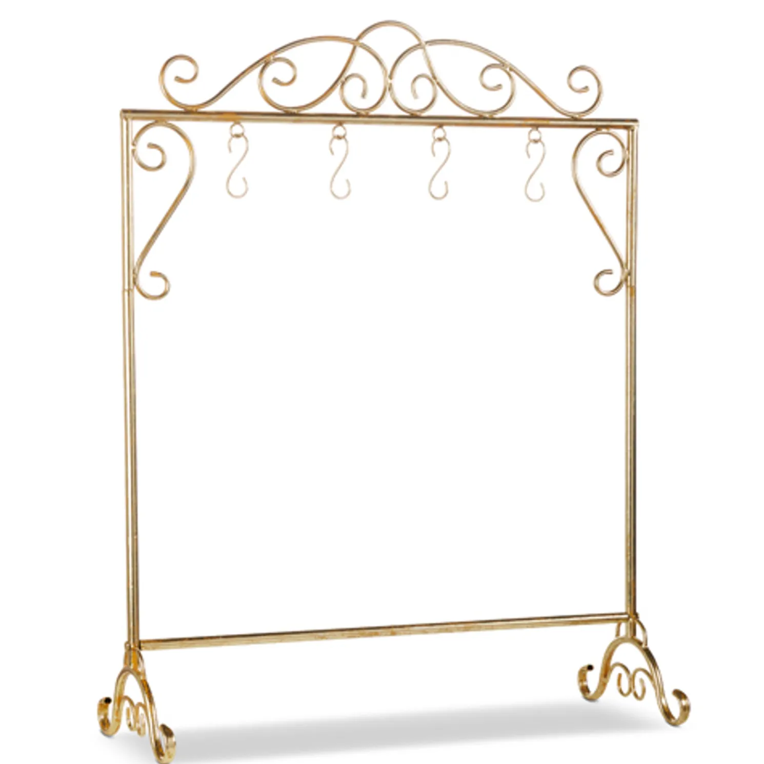 If you don’t have any place to hang your stocking this year, don’t worry! This features 4 hooks to hang your stocks and ornate golden loops to make it a stunning piece of decor!Made by Raz Imports.Made of iron.Dimensions:32.25″ L X 12.25″ W X 42.5″ H.Item #: 4317036