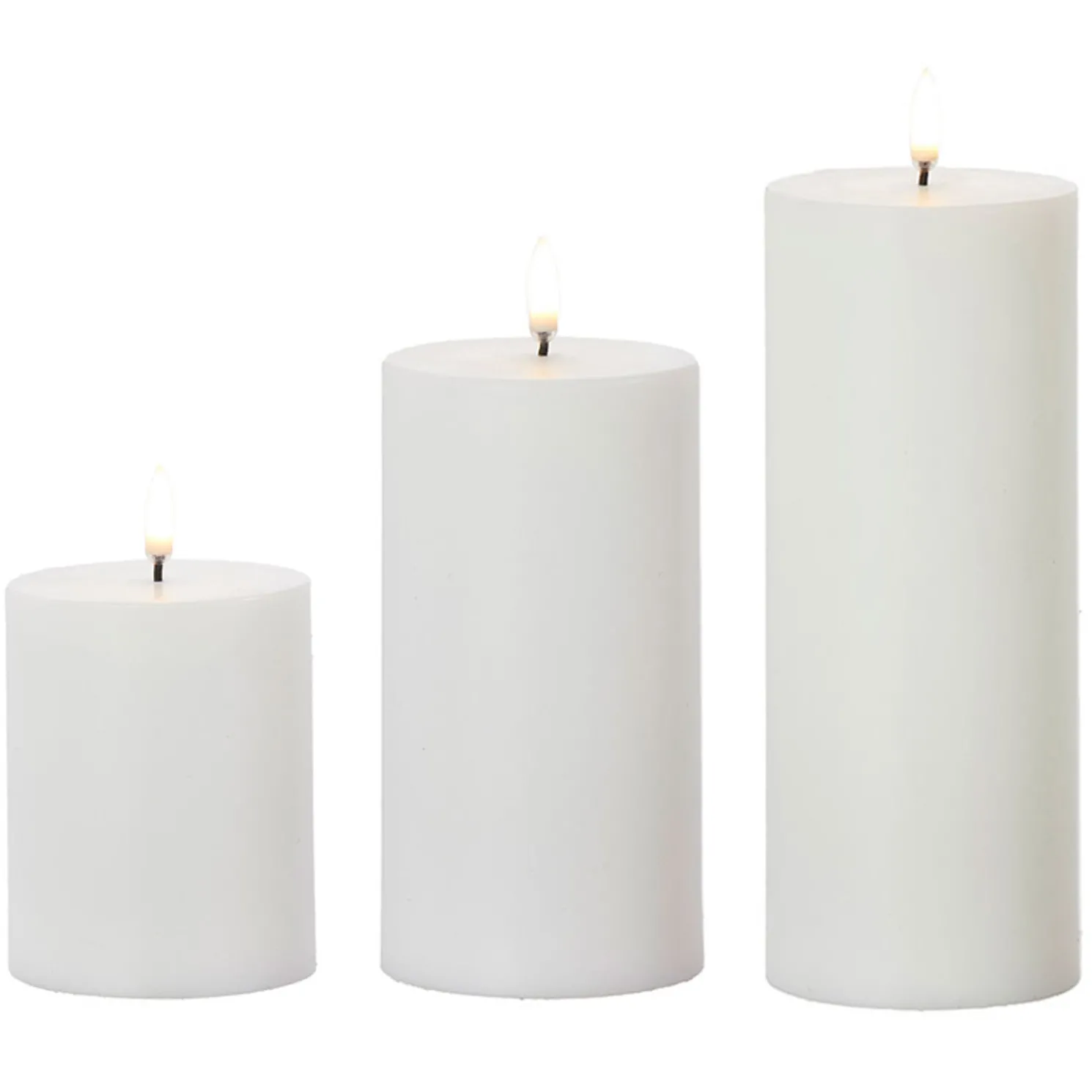 Decorate your home with these awesome candles! They aregreat to use on a table because you can see the flickering flame from all sides! Choose from 3 different heights, making it super easy to customize the most perfect look for you!